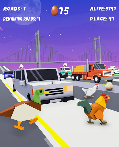 Other Chicken players are also joining the fun road race, Look on both sides of the road to cross and become chicken runner winner of the race. Collect the maximum eggs you can laugh and scream with fun running 3d gameplay crossy chicken and duck game.