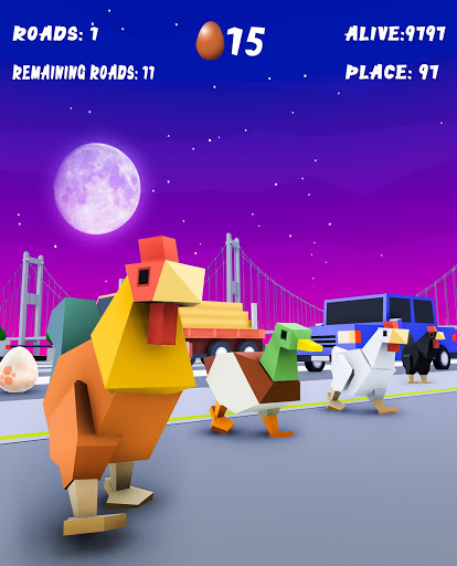 This chicken game is the fun multiplayer running game with 100 users playing around the world. If you can beat them in running and crossing the road you are a winner. If you are a real chicken dinner winner you will love to play this and enjoy running from day to night and dusk to dawn. The sounds of funny screaming and humming chickens will make you laugh a little harder and will make your day more fun with the crazy chicken runner gameplay. Chicken sub road surfer game.