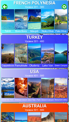 🎮 In our word puzzle game, you will visit picturesque places and will find a lot of magnificent wonders of nature. Have you ever relaxed in Boracay, Philippines? Have you ever observed the beauty of Baatara Gorge waterfall? Have you ever been to French Polynesia? With our word game, you will see these and many others!