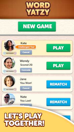 Word Yatzy is more than just a scrabble game with friends. How good are you at spotting words from a random set of letters? Do you have the Yahtzee skills to fill all 5 slots and score big?! Get ready to test your word and strategy skills on this new addictive word game!
