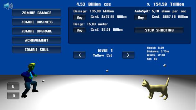Spit zombie virus to infect the target and the world, buy business and upgrade to make more money, reset game to gain soul for extra bonus, game will auto generate money base on your cash per second(CPS) generated from the business even if you offline