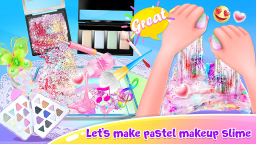 - Vivid animations to add all the pastel makeup into the clear slime.