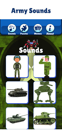 But the army games for toddlers free don't end there. The activity app includes a beautiful collection of military games for kids like army puzzle games for kids, fun army matching games with memory cards, and funny combat vehicle sounds.