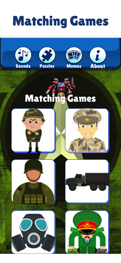 It's a lot like the memory game you can play with cards. The only difference is that you can play our military matching games for kids on your phone or tablet.
