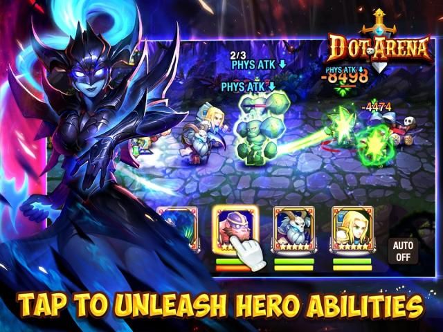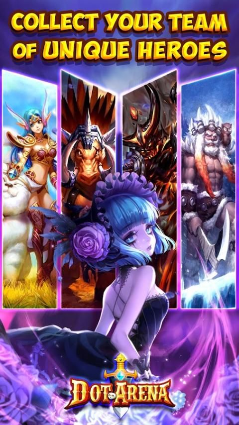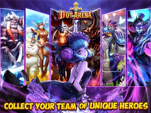 4 Team Customization - in Dot Arena, there are Over 100 million combinations of heroes, let alone equipment so it is up to you to select your team! Your skill, strategy, and lightning fast reactions will command your heroes in each battle to lead you to victory. If you don’t have the meta-friendly heroes, don’t worry, rentable Mercenary heroes in camp are waiting to be hired.