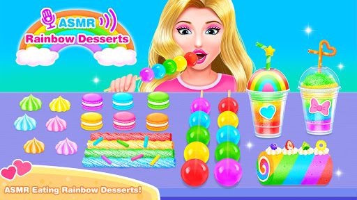 ASMR games start cooking fever in the pastry kitchen! And now this eating mania is sweeping the kids games for girls! The first step is to make more yummy food in the fun cooking games; second, enjoy them in the eating game! Candy girl especially loves the AMSR feeling of food eating! Wanna have the same food game experience? Welcome to our unicorn food party in the girl games! Here we have prepared colorful jelly balls, rainbow slushy, sweet candy straws, yummy cake roll, tasty meringue cookie and delicious macaron! Let’s play girls games of ARSM and start your eat game right now!