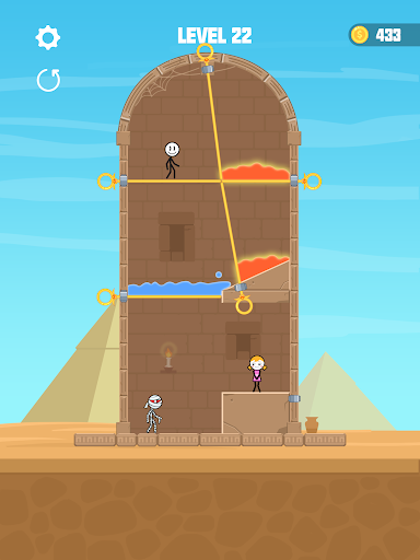 Rescue Stickman focuses more on strategic adventure. Each level gives you multiple options-pull the correct pin to continue.