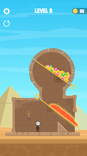 Rescue Stickman is a brain burning game. Your goal is to try various commands and methods to pull the pin out, avoid bombs, lava, and mummies according to the setting of the game... Finally, help the stickman get gold coins or save the stick princess. How to pull out the pin and rescue the stickman is up to you!
