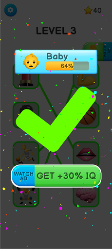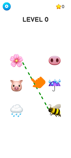 Every level shows you a number of emoji to connect, become the emoji master and solve the matching puzzle. Tap one by one on the elements from different columns to connect them with a line. Or drag to draw a line and connect elements from different columns.