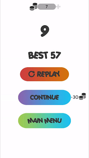 The level of bricks is going to be augmented when every round you shots fired balls When you touch the bottom you lose, but you can continue if you have collected minimum 30 coins, or you can get free coins.