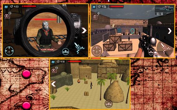 As you progress to the 3rd episode, you're again tasked with 5 missions. This time the forces of crime have joined up, its a hideout featuring both terroists and mafia gangsters. Time to take the game to the next level and take them all down! Don't leave a single terrorist or mafia gangster standing! After you're done taking them down, the Boss Sniper will come. Make sure you hide before firing. He will deplete your life.