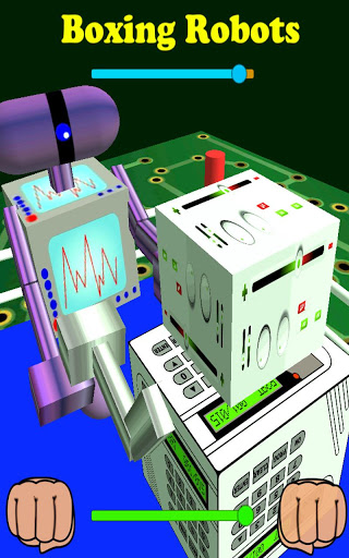 Tap the two hand controls on the bottom of the screen to control your robots metal fists. Hold the button down to lift an arm, and release it to punch. You'll soon master the upper cut, jab, and