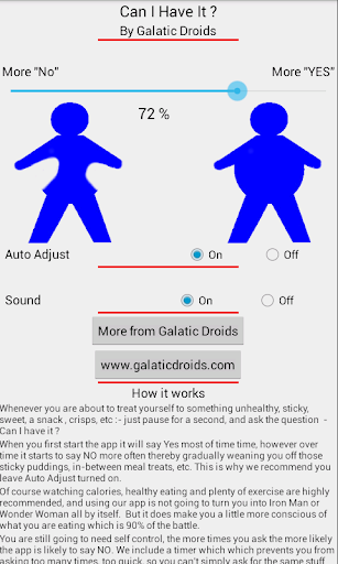 When you first start the app it will say Yes most of time time, however over time it starts to say “No” more often thereby gradually weaning you off those sticky puddings, in-between meal treats, that odd packet of crisps etc.