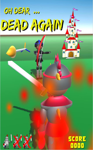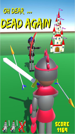 You play the part of our BRAVE knight and have to swipe the arrows out of mid air with your sword. ( I think our knight has taken one too many mace blows to the head,