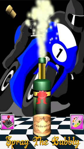 You can pretend to be a top race car driver spraying champagne around after winning the latest grand prix race. So of course we have backgrounds featuring race cars, motorbikes and the chequered flag.