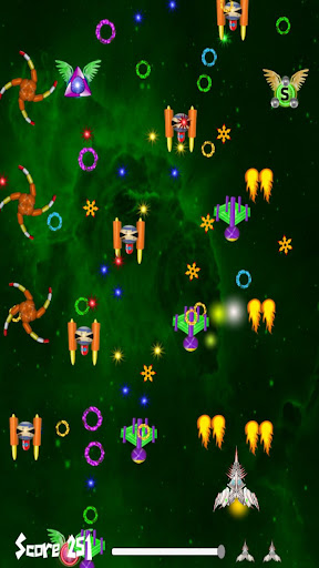 Your mighty star ship is heavily armed with the latest experimental weapons and capable of taking an immense pounding from the countless galactic invaders.
