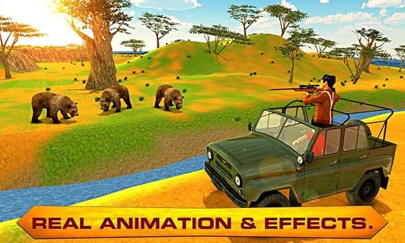 No need to go game hunting to African deserts! Just get that massive advanced sniper gun ready & aim to shoot! Kill em all! Unleash your hunter spirit with this wild bear hunt simulation game where the hunter becomes the hunted! Predator will have to face the lone sniper in his ultimate mega jeep who’s ready with its modern rifleman gun in his camouflaged pants.