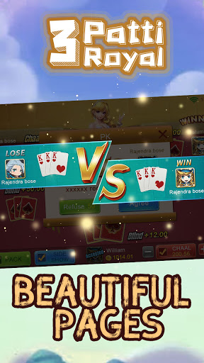 In here, we will give you the best experience for advanced technology and excellent strategy. Play against your friends and other players in real time online multiplayer matches. Whether you are a returning Teen Patti veteran or a new player- you will find a lot to your liking in this iteration of India's most loved card game.