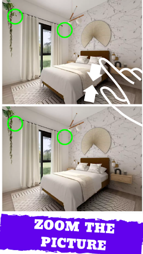 Decorate your house or apartment with this homestyle app. Test your detective skills Find 5 differences between the two pictures you have 2 live, 3 free Hint without time limit. Spot the difference puzzle game.