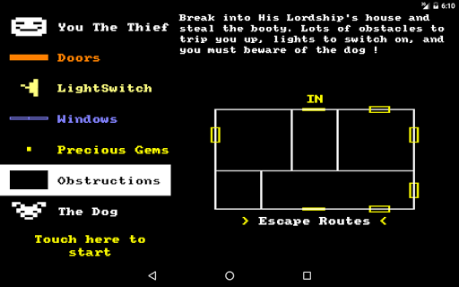 "Break into His Lordship's house and steal the booty. Lots of obstacles to trip you up,