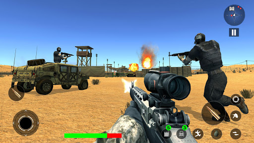 In FPS HONOR: Free Shooters Fire Battlegrounds each mission is different from the previous one you played. Commando, unfinished stealth missions are awaiting for you to accomplish in desert battlefield. Survive yourself through each mission to get surprise weapons like SMG, AK47, Carbine, Gernads, RPG (Rocket Launcher) & snipers for sniper missions as sniper master at the end. You can purchase new upgraded guns, medkits to refill you'r health & deadly grenades from our weapon store. Your missions also include impossible escape missions on you'r helicopter within time like the escape of prison army soldier of your firing squad from enemy jail. You have to pick secret military intelligence documents very important to your country nuclear plant safety stolen by the enemy during a war loss within given time & have to come back your squad helicopter. You have to destroy enemies transport system by destroying enemy transport trucks and modern warfare supply. You can also use the RPG (Rocket Launcher).. Destruction of deadly jet fighter airplanes to stop surgical strike also included in your deadly intelligence missions list. For far range target shooting a long list of snipers with extra zoom are added to your weapons list. Missions become more challenging as you progress & at the end of each your survival is critical. Utilize your commando skills you have in this best gun shooting game. You are proud of your army don't let their head down.