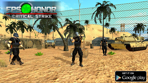 You are searching for your favorite FPS shooting game 2020..???. It's ends over here with the release of FPS HONOR: Free Shooters Fire Battlegrounds in the honor of first person shooters in desert army base as the name of this new free action game implies. FPS HONOR: Free Shooters Fire Battlegrounds Game is based on desert army base occupied by enemy soldiers in a dead zone. In this free fire FPS shooting game you play as part of IGI team. You landed in front of this military base after your jet crash due to enemy attack with ballistic missiles. You have only one M191 pistol for your survival. You have to to snatch enemy's latest gun to complete unfinished missions after your army bulten defeat in this trending game 2019. Top shooters & sniper masters with a strong aim of the enemies are hidden in strategic locations of this territory. You can also Upgrade your guns to higher guns from our huge arsenal of assault rifles to hunt your enemy in different parts of the combat zone. In this game your survival is critical!. One of best Sniper Shooting Games 2020.