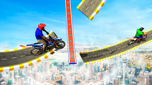 GT bike stunts, Impossible bike stunts & GT bike jump!. In GT racing stunts you have to speed up your MotoGP through long jumps without any hurdles. In impossible bike stunt game mode, you have to drive motorbike carefully through the hurdles otherwise gt tracks hurdle like a spinning saw disk, Hammer, moving metal balls will hit results in fell down from sky high tracks.