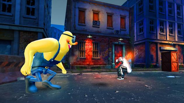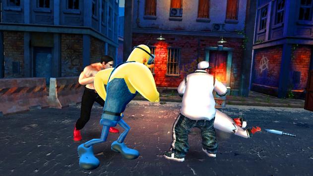 You enemies use a different Kung Fu style , level up and build Kung Fu fighting skills to fight his strong street rivals. Learn to fight and master your kung fu fighting techniques and use them to start your Super Ninja-Bob angry banana hero fighters on the streets. Kings minio if the fight streets are packed fighting 3D multiplayer fighting techniques , showing them on the street in a better style .Angry Bob minioFight n his strong street rivals, win them and earn points.