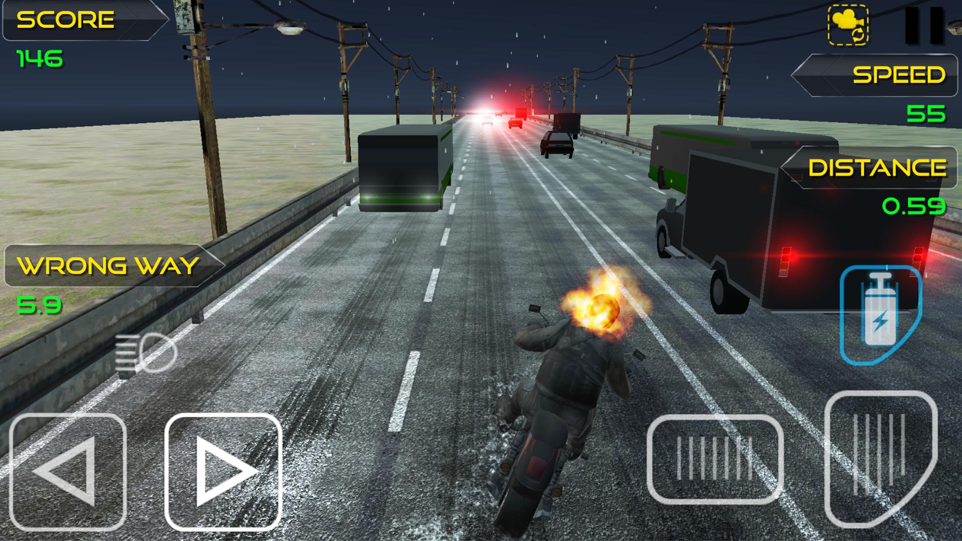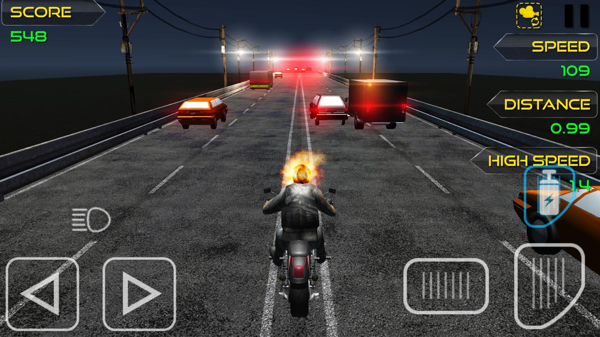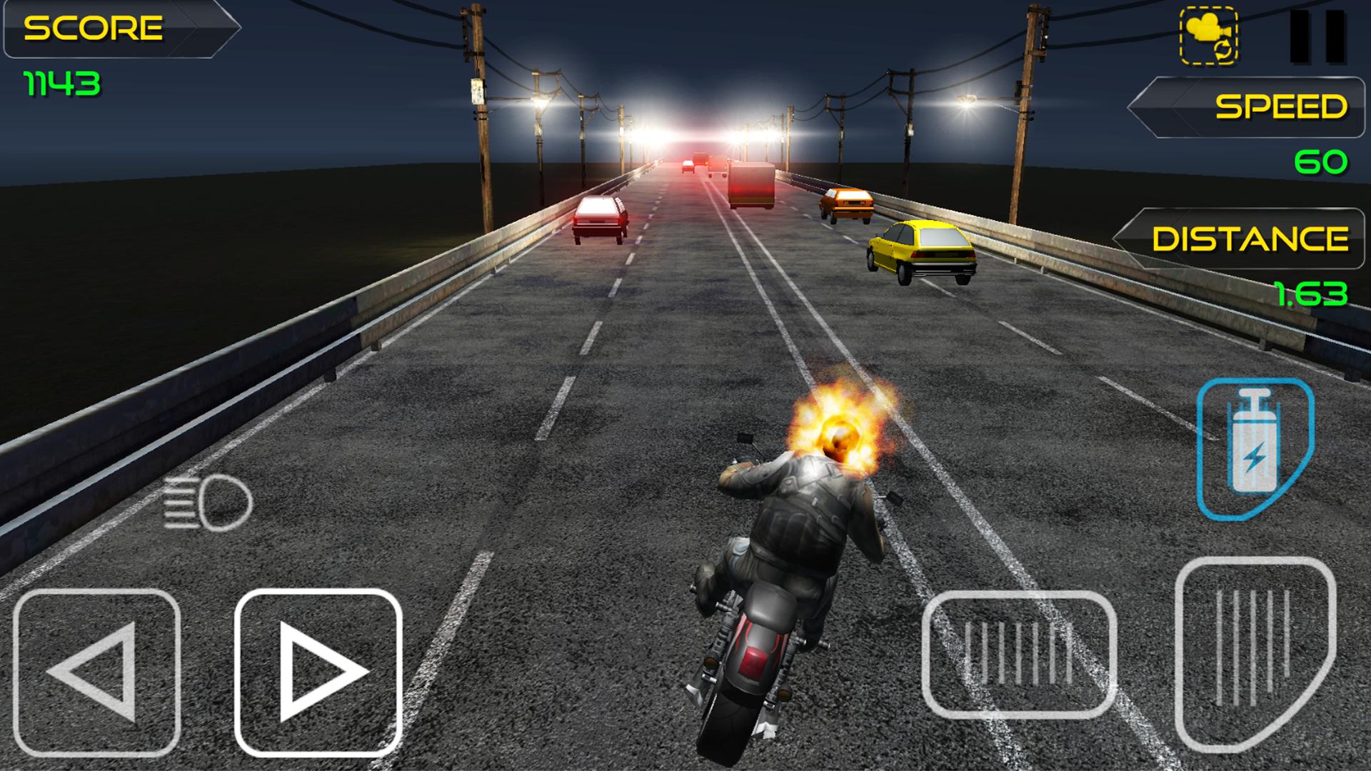 Ghost Bike Rider is a Traffic Rider or highway rider game that takes the endless racing genre to a whole new level by adding a full career mode in horror environment. The essence of smooth arcade racing is still there but in the shell of the next generation. Ride your ghost bike in the endless highway roads overtaking the traffic, upgrade and buy new bikes to beat the missions in career mode.