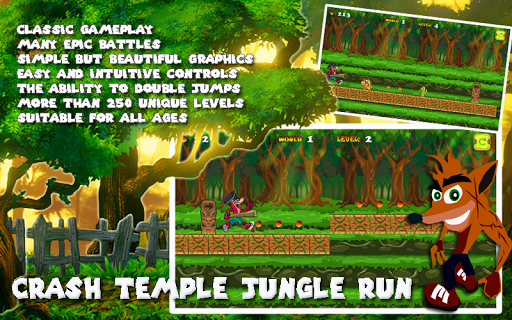 This is an awesome jungle running game. It's fun without crashing to jump and avoid obstacles on time in running and jumping fast. Enjoy and play in various intensive locations full of wild animals and traps waiting for you!