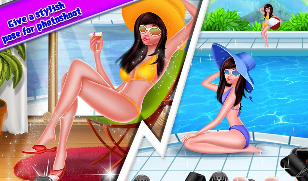 It's time to use your makeover skills in this girls salon game and give her gorgeous look by performing different activities like spa treatments, manicure, pedicure, hand nail art, feet nail art and makeup. Then visit the shopping mall and help her to select beautiful hats, costume, shoes, glasses and much more accessories for the hot summer look on a love date. And then prepare a yummy candy, fancy drinks and enjoy it with your friends at the pool party. At the end, take amazing hot summer photos with your love partner from the different scenes.