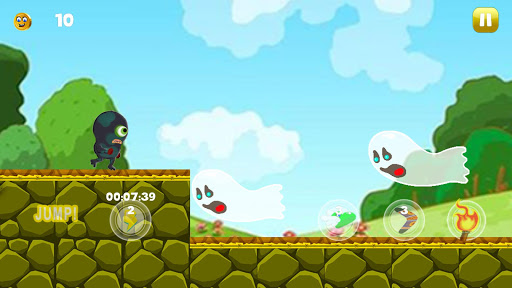 Xris puede saltar, disparar, correr... y recoger todas las monedas posibles que han sido robadas.