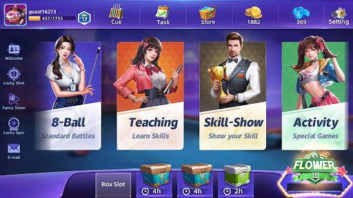 - You can get rewards through the level, the rewards also include pool cues. Different pool cues have different level of FORCE AIM and LUCK.
