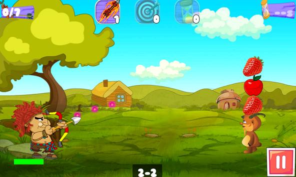 The game play is to shoot fruits with bow and arrow and make a great high score.