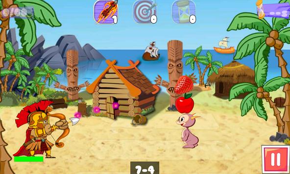 Drag arrow to set your target and power to shoot ,try to shoot fruits , coin and opponent quickly with less arrow and get more coins to buy to magic powers from store. You will buy power such as 1. Burst All fruits , 2. Show full Arrow Path,3 . Add 10 sec to time limit