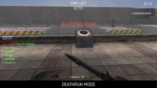Fast paced shooter features multiplayer zombie mode, surf online, deathrun online, deathmatch online and arms race online. Zombie mode includes different gameplay mechanics: zombie classes and various shop items. Deathrun mode includes knife types and day types.