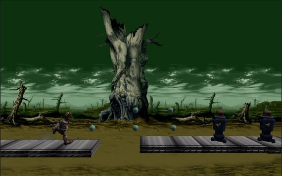 Press the jump button to jump on the slates and traps spread by robots.