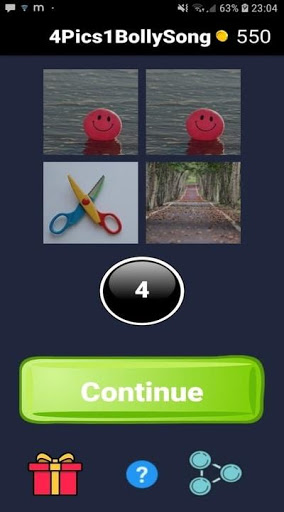 4Pics1BollySong is a fun puzzle game to guess Bollywood songs on the basis of 4 pictures displayed as clues. You get daily rewards and hints at each level.