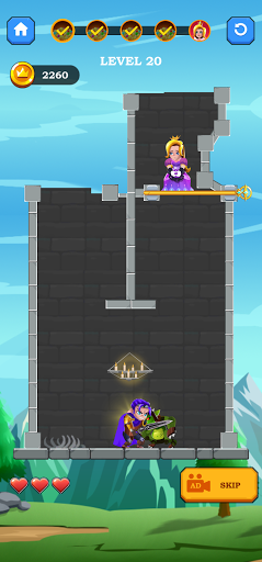 Rescue the hero and help him collect the coins by using your brain to solve the pull the pin logic puzzle levels.