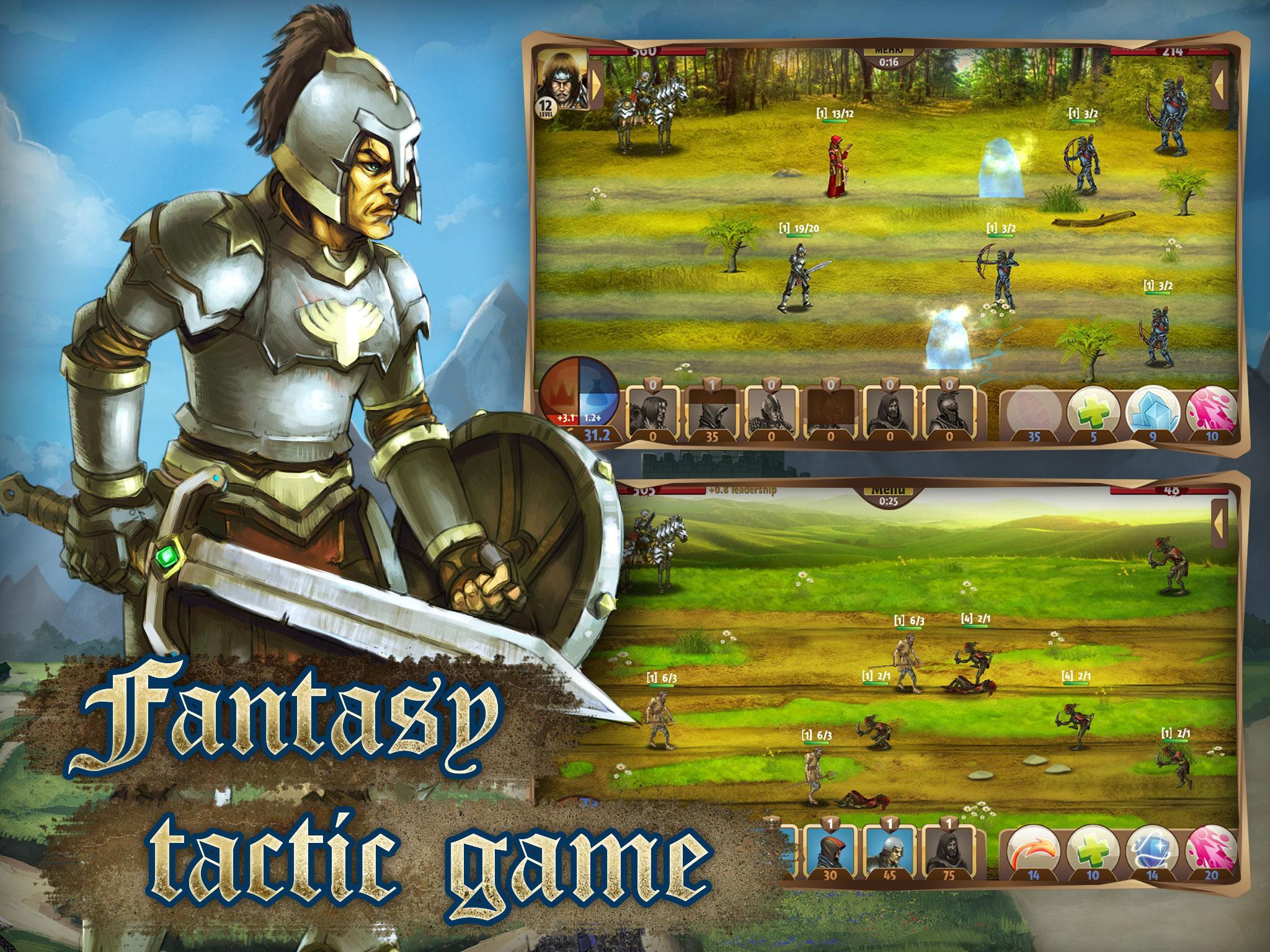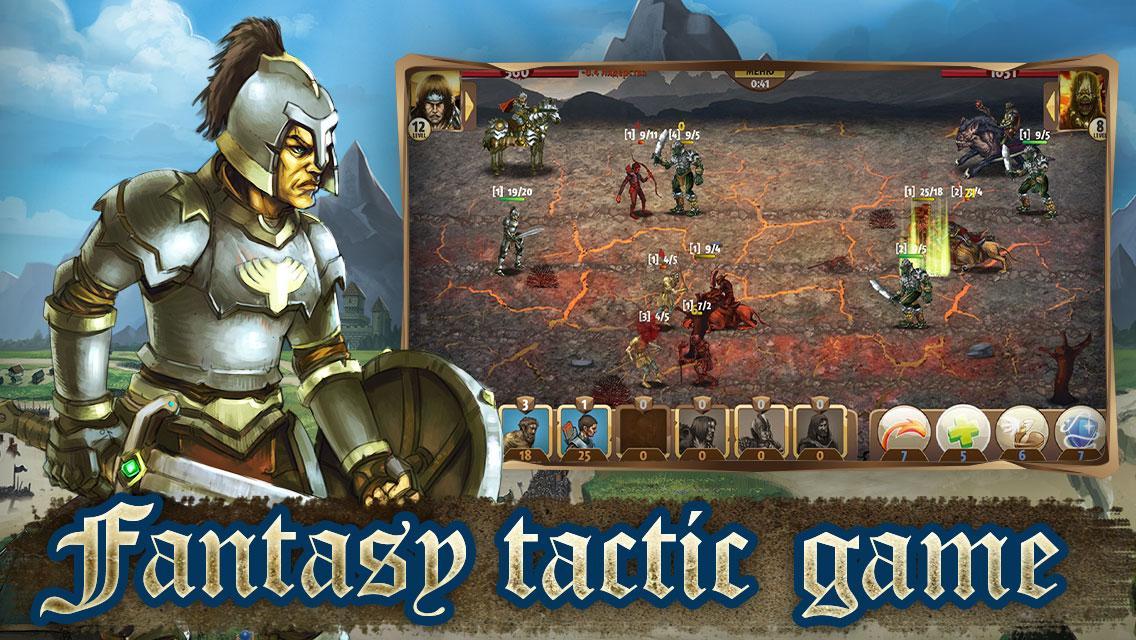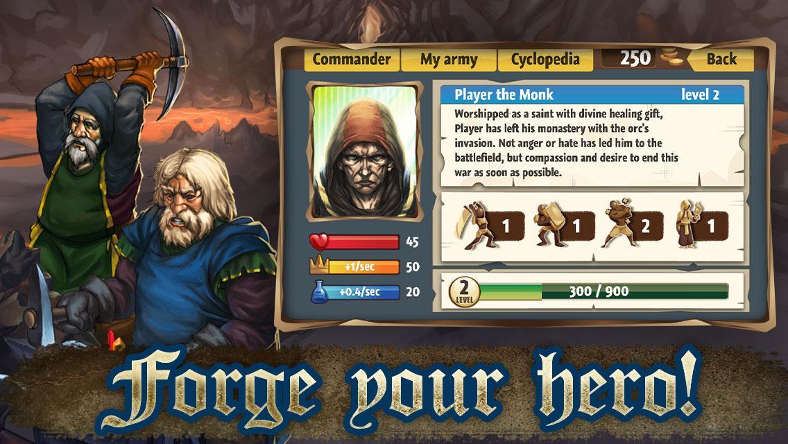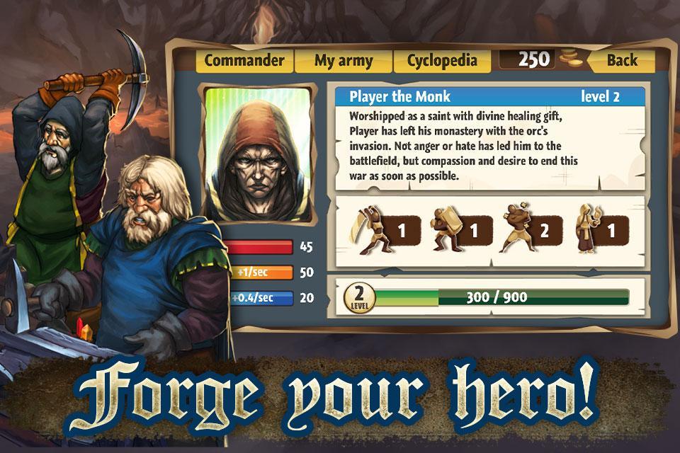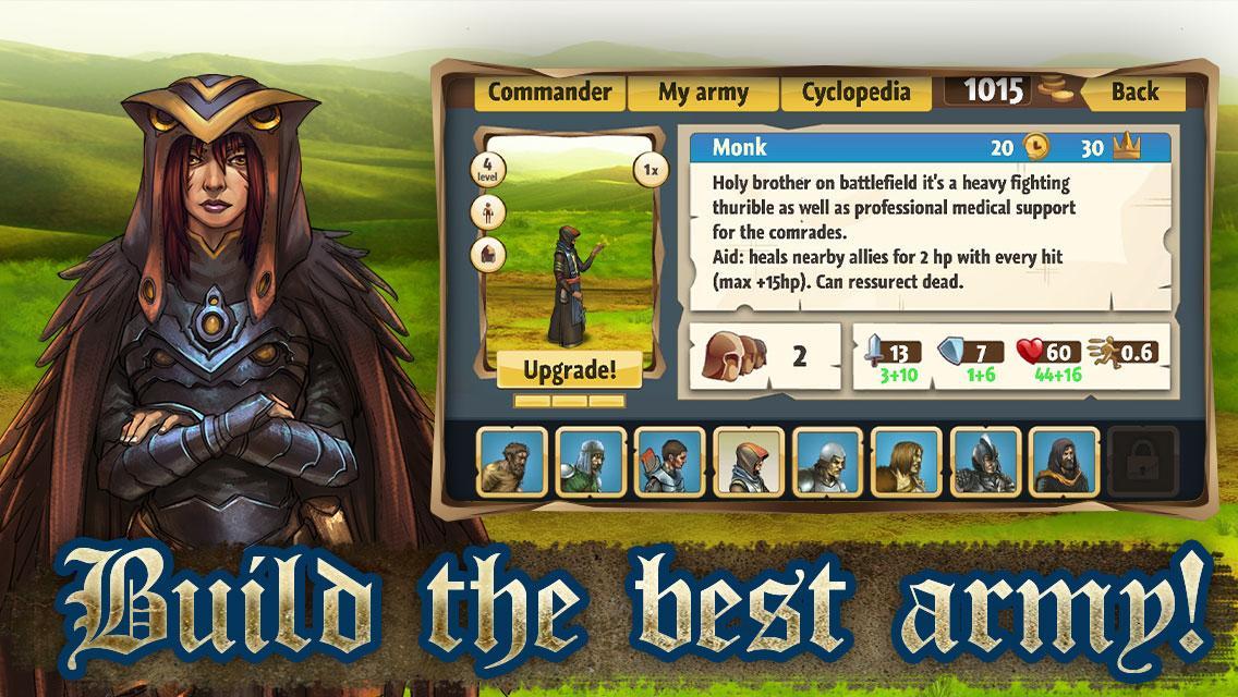 If the kingdom will survive or fall depends on one of its best commanders: a strong barbarian, an unflinching guard, a merciful clerk and a mighty wizard. Choose the one who is going to be at the head of the humans, gather your army and go to fight!