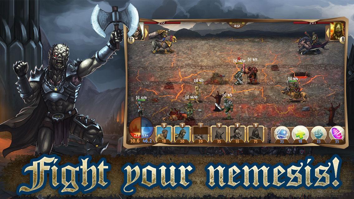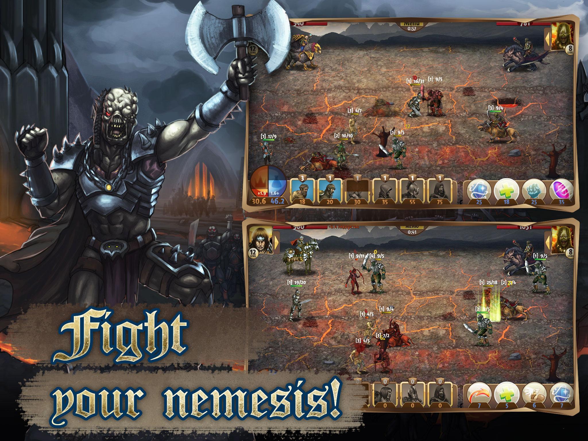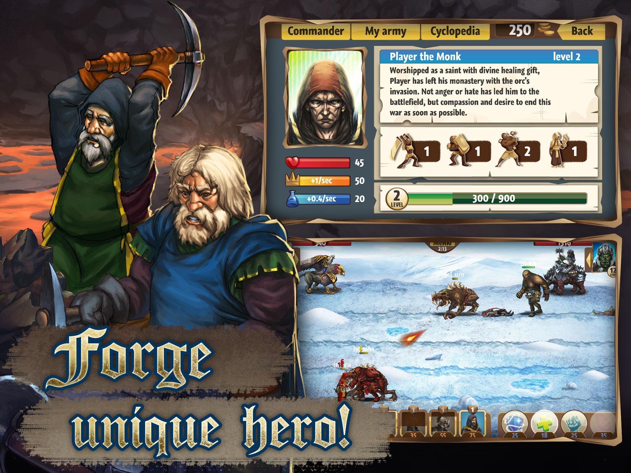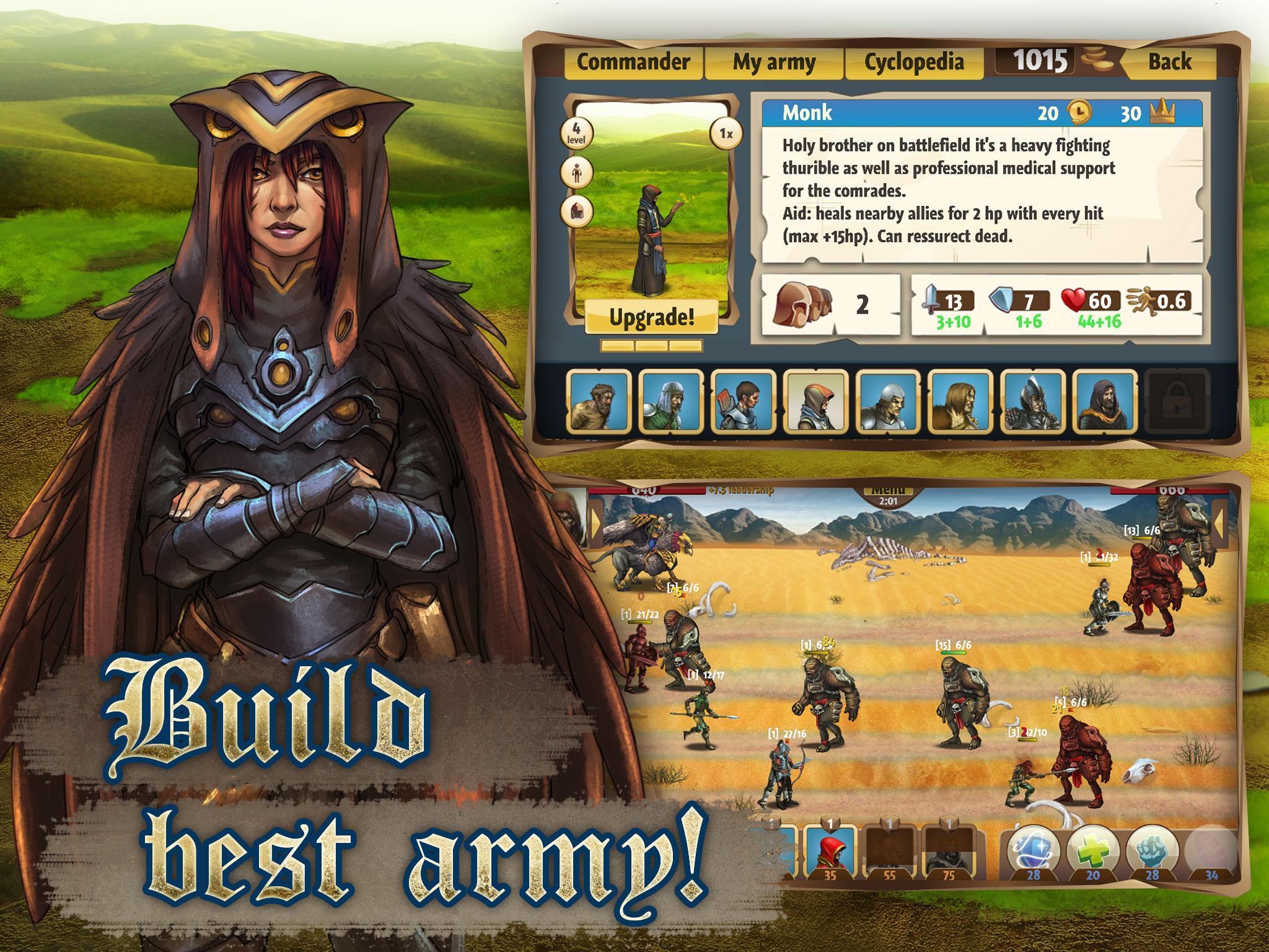 If the kingdom will survive or fall depends on one of its best commanders: a strong barbarian, an unflinching guard, a merciful clerk and a mighty wizard. Choose the one who is going to be at the head of the humans, gather your army and go to fight!
