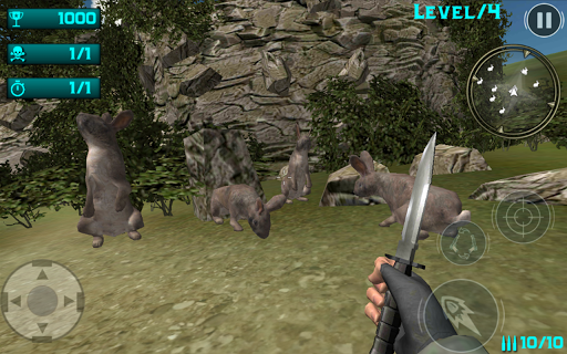 While you are shooting or hunting the rabbit as an animal hunter or a commando sniper in the jungle(forest), you should beware of different animals walking around your target. So just focus of rabbit to hunt it, because rabbits are very sharp, you need to focus on your target wisely like a professional or a real huntsman with an eagle eye. When will you miss shot then rabbit runs away or climb to tree or other places or hide behind the bushes because they are pretty tiny and sharp animal, also have great senses. So shoot at exact time other it will hide behind hinge. The mode difficulty of this free game will increase gradually, clear or pass your levels in short time period to move on next like real hunter.