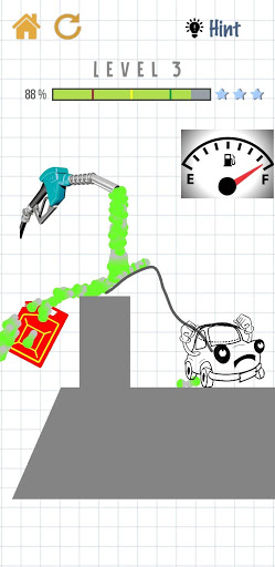 Draw the line in the front of petrol dispenser and make a suitable path for petrol to reach an empty car and make him full from oil and make him a happy car. Some levels look much easy but the developer have put some tracks and hurdles which is hard to complete, in which a sad car is waiting to make him happy by filling the oil.
