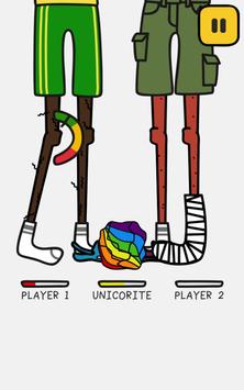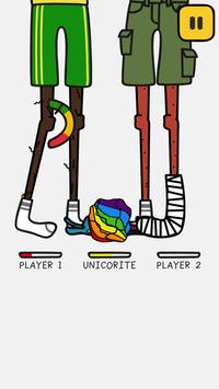 Stay in the green zone to spare your leg or dare to kick hard to crash the rock faster and surpass your opponent!