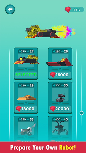 Use the in-game currency to UPGRADE and CUSTOMIZE your ROBOTS.