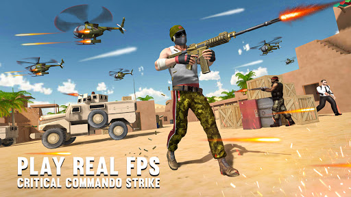 Welcome to our new FPS Counter Strike Shooting game 2021, Critical Commando Strike - FPS Shooting. Be a professional FPS shooter and shoot all the terrorists and enemies attacking you like a sharpshooter in a given time. Terrorists and enemies have hijacked multiple places where innocent people are kept. You need to save all the people from terrorists by attacking and shooting terrorists with your fps shooting gun and heavy fighting weapons in this first person shooting game. You need to win this fight and end this war by shooting all the terrorists and enemies with your counter strike fps guns and weapons.Just aim and shoot right at the enemies and go on until you finish all of them and save all of the places with your professional shooting skills in Critical Commando Strike - FPS Shooting game.
