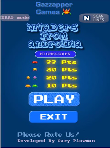 2 Finger Drag Mode: Touch bottom screen to have ship follow your finger and tap screen above the ship to fire.