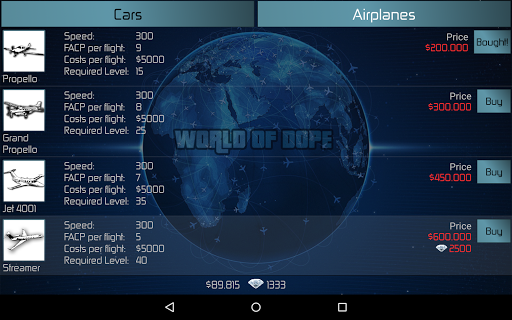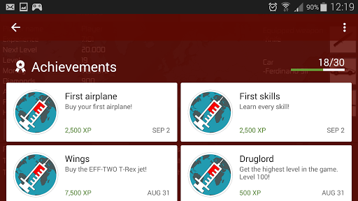 Gain experience by dealing and level up to get access to more drugs, weapons, cars and airplanes.