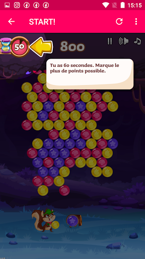 Although it may look adorably cute, Bubble Woods is a thrilling high score game experience. In 60 second rounds your only goal is to reach the highest score possible. Shoot the biggest clusters, use super effective power-ups, play strategically and be quick. This is not your average bubble shooter, this is Bubble Woods!