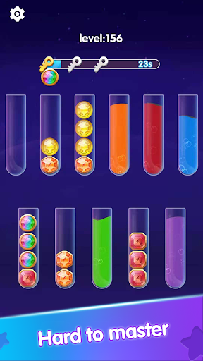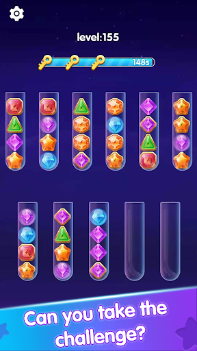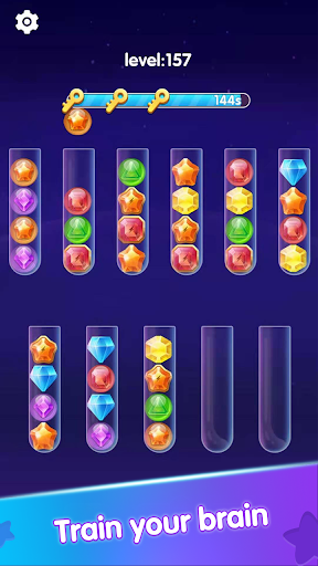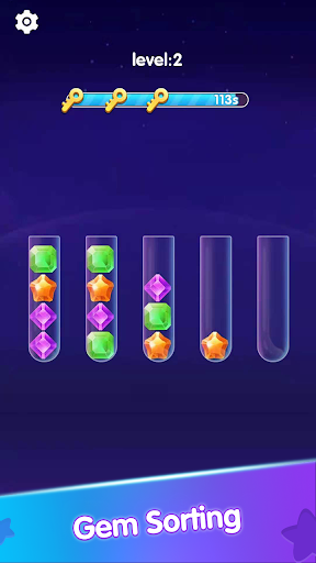 Try to sort the colored gems in the tubes until all gems with the same color stay in the same tube. A challenging yet relaxing game to exercise your brain!